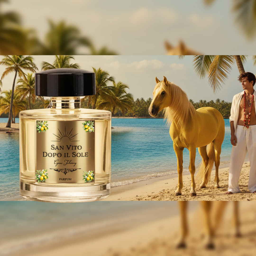 San Vito Dopo il Sole is a unisex fragrance that embodies freedom, warmth, and quiet luxury. A tribute to Sicily, to San Vito Lo Capo, and to the timeless beauty of the Mediterranean after the sun has set.